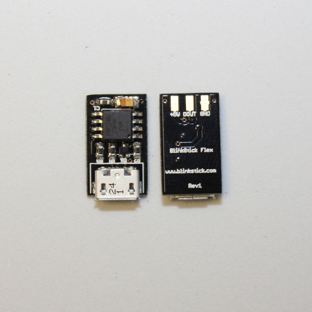 - Integrated ATTiny85 with BlinkStick Flex firmware