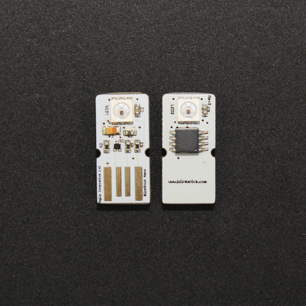 BlinkStick Nano is the successor of the original BlinkStick LED kit with two super bright full color LEDs on top and bottom! Each one can be controlled individually. BlinkStick just keeps getting smaller and Nano is our smallest ever notification device.