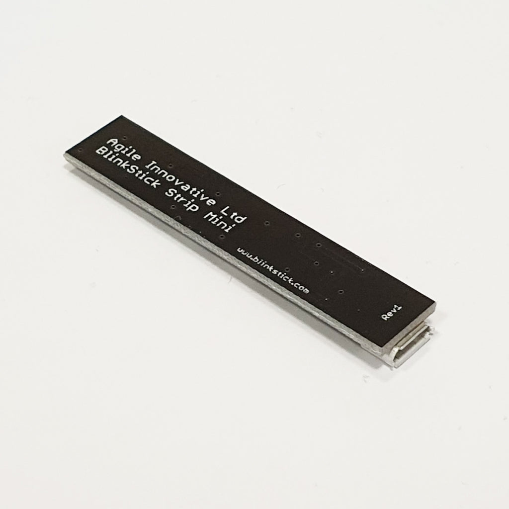 BlinkStick Strip Mini gives you 4 individually addressable RGB LEDs in a super small package! They are nicely lined up in a row and is ideal to create running lights or use each pixel for separate notification type. You no longer have to limit yourself to just one LED and now you can have 4!